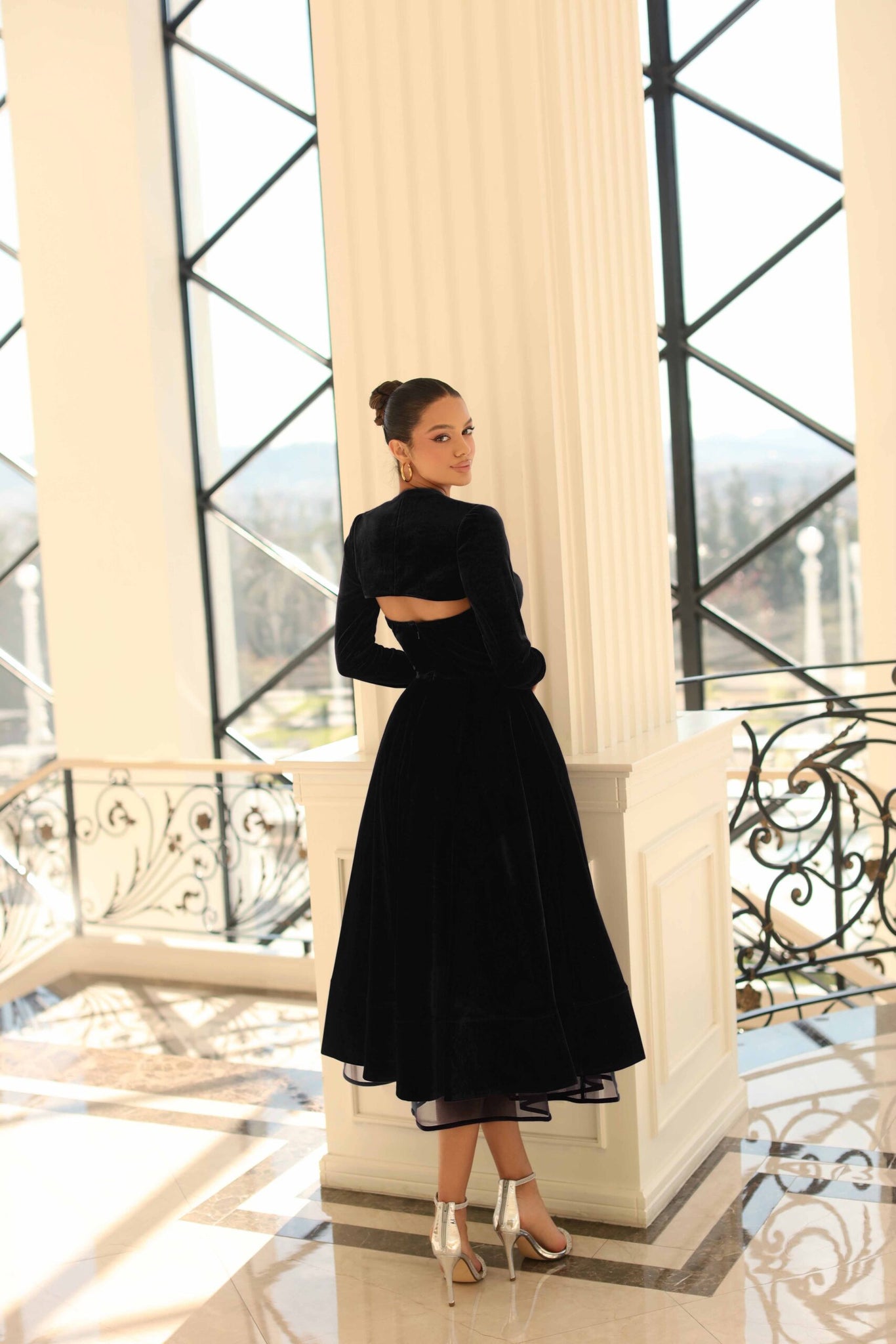 It also features a tulle petticoat and comes with a matching bolero jacket.